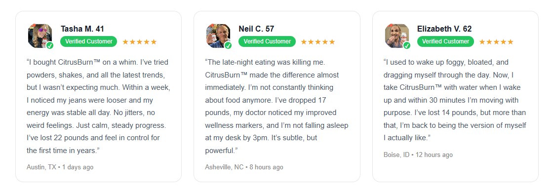 Positive user testimonials and scientific research reinforce its credibility, making CitrusBurn a safe, effective, and transformative choice for weight management and holistic health improvement.
